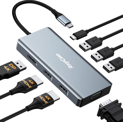 USB C Docking Station Dual Monitor Adapter, 8 in 1 Laptop Docking Station 3 Monitors Quadruple Display USB C Hub Dongle To 4K HDMI+DP+VGA