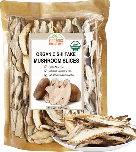 VIGOROUS MOUNTAINS Organic Shiitake Mushrooms Sliced, Great Size Fresh Texture Rehydrate Quickly, Dried Shiitake Mushrooms For Cooking Soups, Ramen,